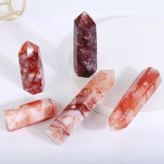 Fire Quartz Tower Red Energy Hexagonal Column Crystal Point for Reiki and Healing