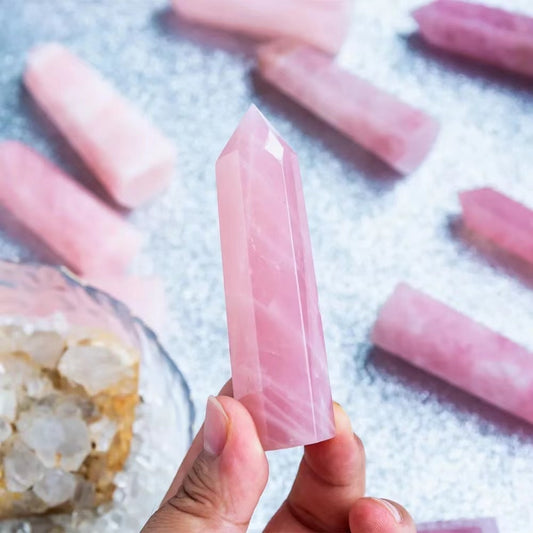 Natural Rose Quartz Crystal Point Wand | Promotes Emotional Healing and Self-Love
