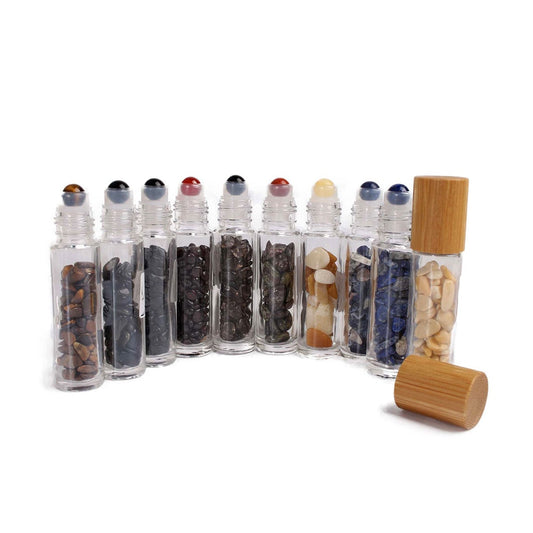 Bulk Pack of 10 | Eco-Friendly and Refillable Crystal-Infused Essential Oil Containers with Gemstone Roller Ball